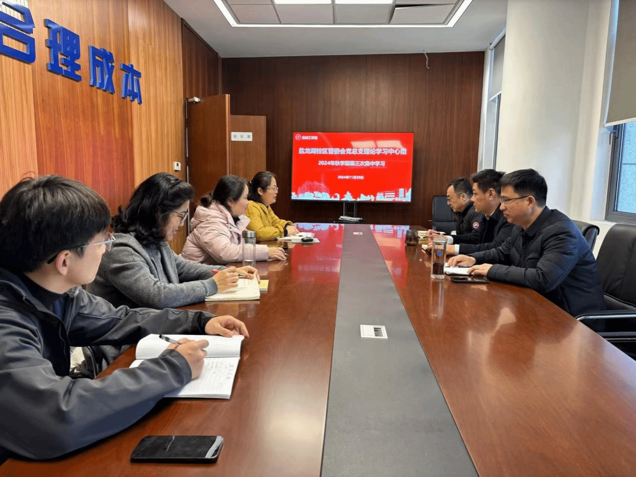 11月29日下午,盐龙湖校区管委会党总支理论学习中心组在大学科技园二楼会议室举行2024秋学期第三次集中学习会,党总支副书记(主持工作)赵云峰主持,党总支理论学习中心组全体成员参加。