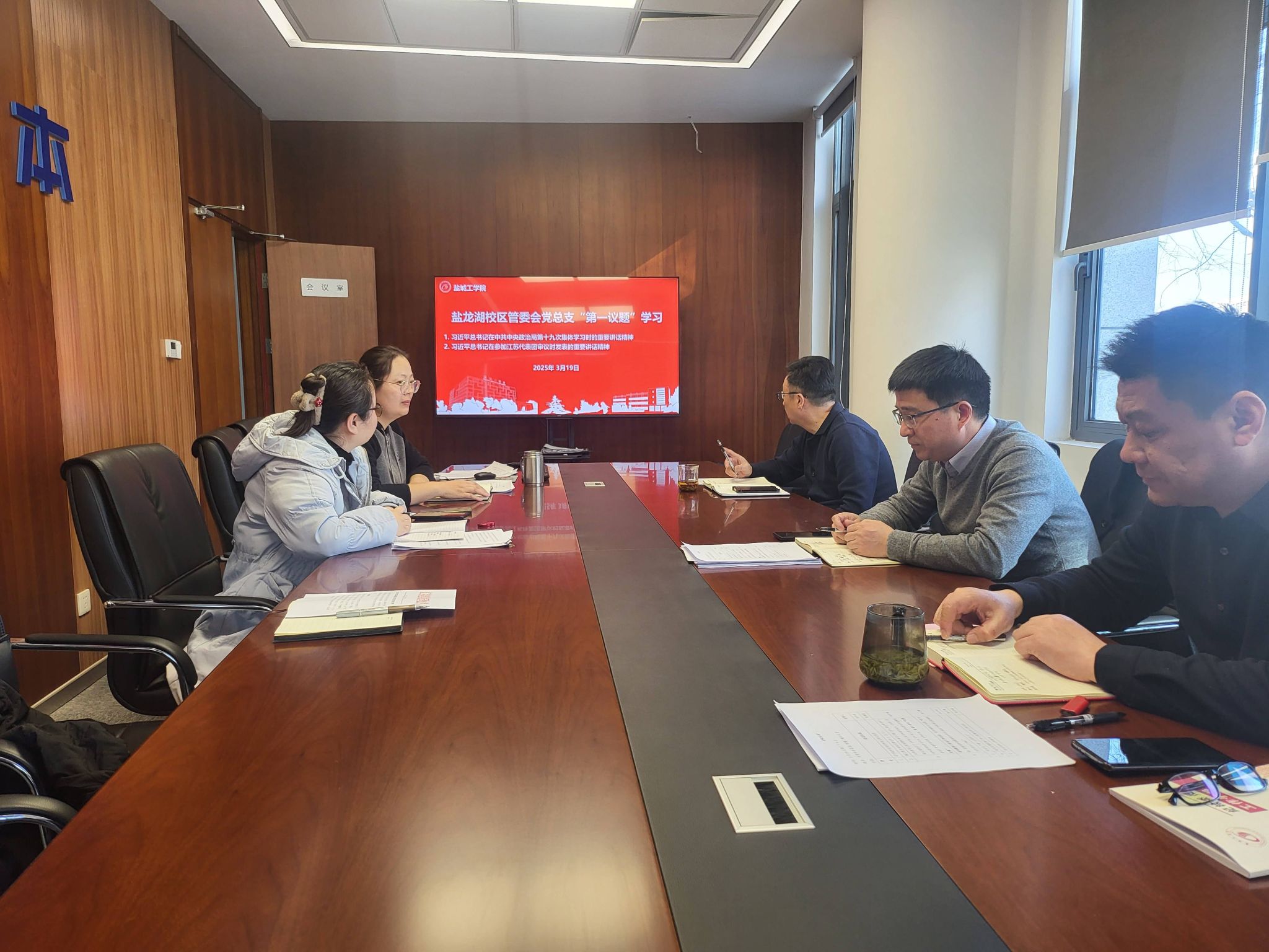 3月19日下午,在大学科技园E1南楼二楼会议室,盐龙湖校区管委会党总支“第一议题”认真学习习近平总书记重要讲话精神。党总支副书记(主持工作)赵云峰主持,党总支委员会委员及中心组成员参加。