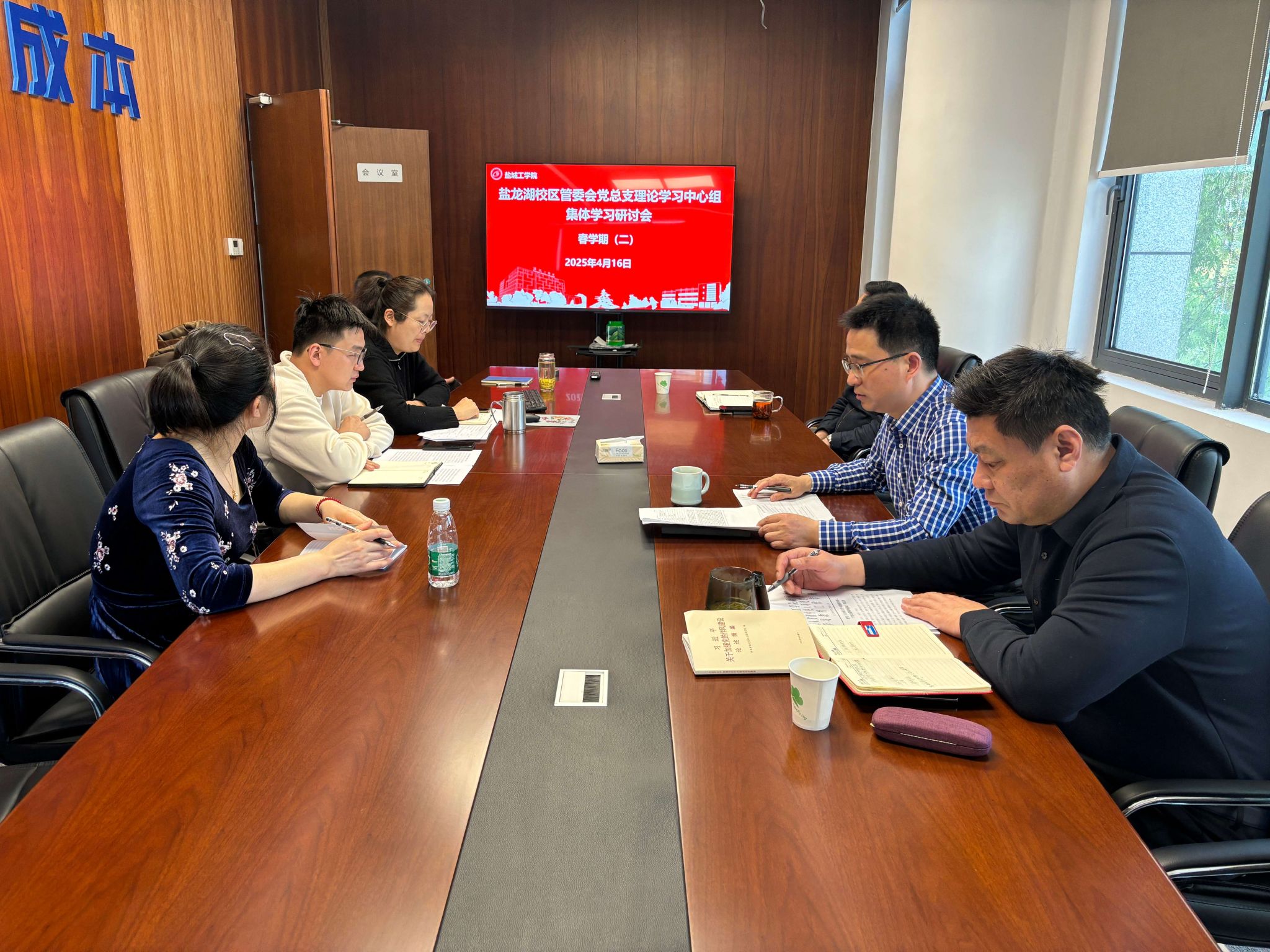 4月16日上午,盐龙湖校区管委会党总支理论学习中心组在大学科技园E1楼会议室举行2025春学期第二次集中学习会,党总支副书记(主持工作)赵云峰主持,党总支理论学习中心组成员参加。