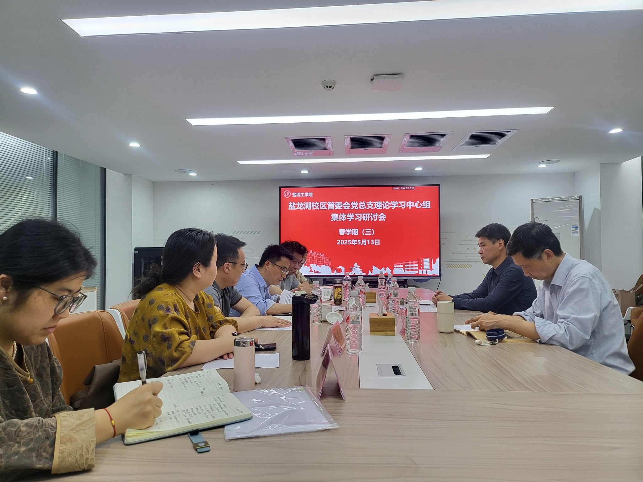 5月13日下午,在西伏河产学研协同创新中心215会议室,盐龙湖校区管委会党总支理论学习中心组召开集体学习研讨会,校党委第四巡学旁听组组长张雷、副组长周政旁听指导。会议由部门党总支副书记、副主任(主持工作)赵云峰主持,部门中心组全体成员参加。