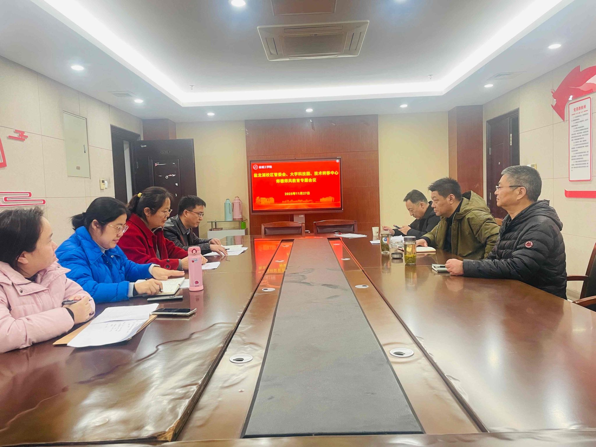 11月27日下午,盐龙湖校区管委会、大学科技园、技术转移中心在行政楼530会议室召开师德师风教育专题会议。副主任、党总支副书记(主持工作)赵云峰主持会议,部门全体教职工参加会议。