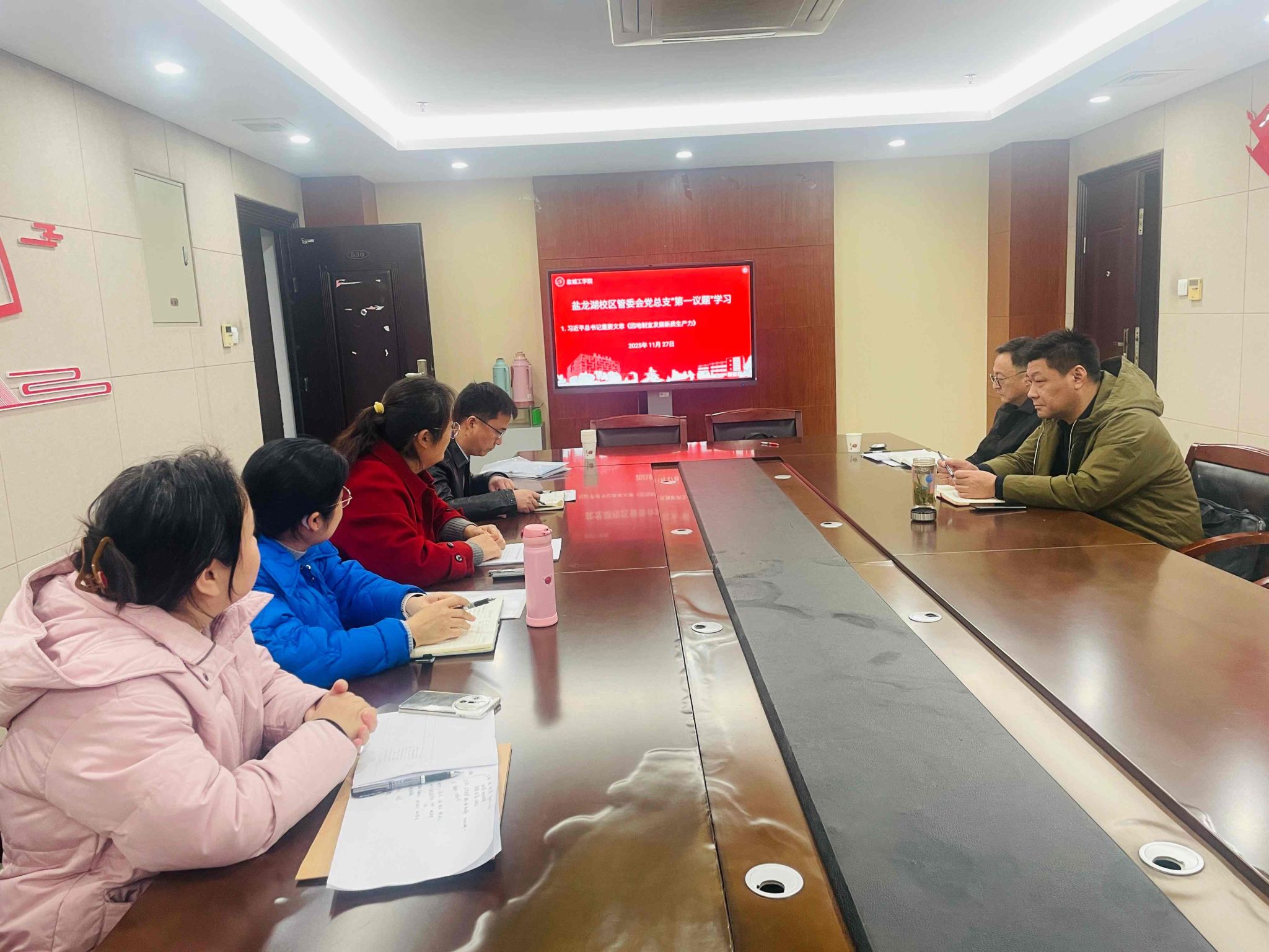 11月27日下午,在行政楼530会议室,盐龙湖校区管委会党总支“第一议题”认真学习习近平总书记近期重要文章。党总支副书记(主持工作)赵云峰主持会议,党总支委员会委员、理论学习中心组成员参加学习。