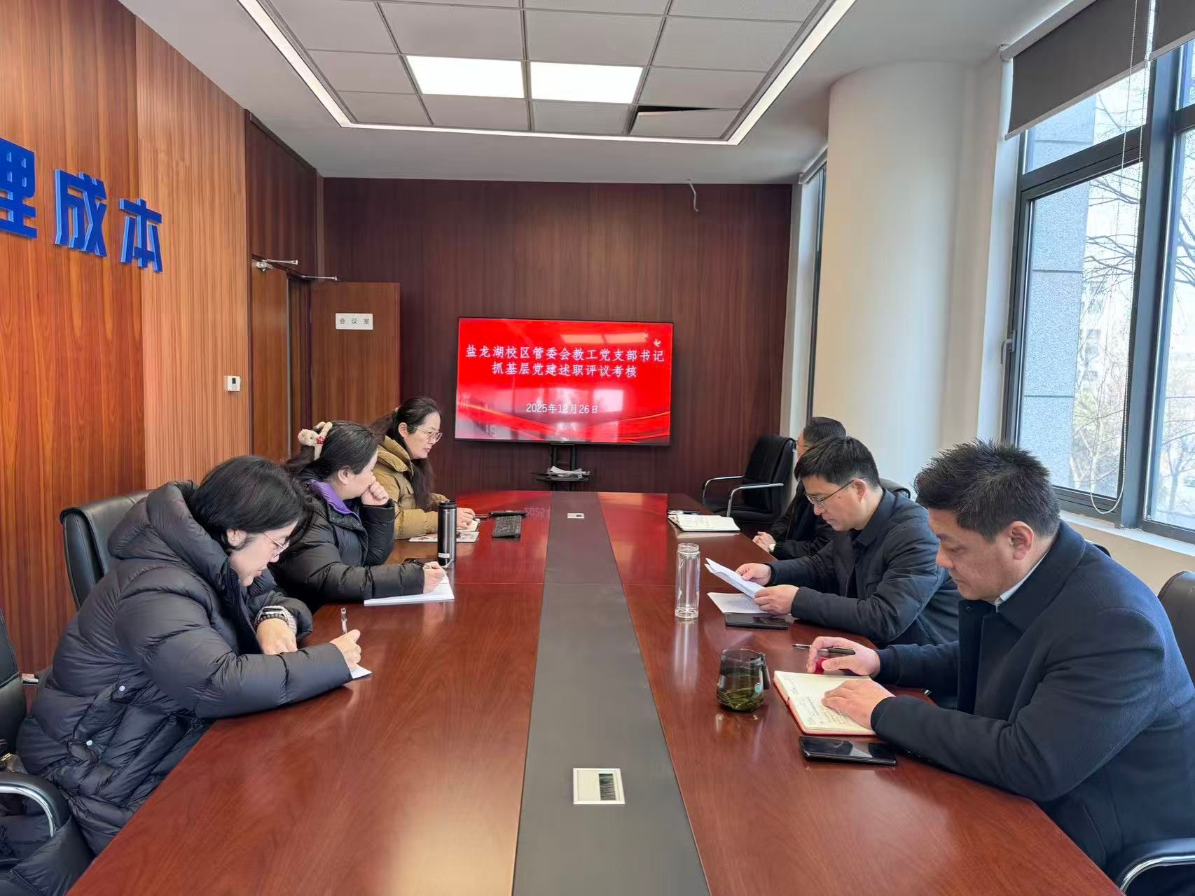 12 月 26日上午,盐龙湖校区管委会在大学科技园E1楼南楼二楼会议室开展2025年度教工党支部书记抓基层党建述职评议考核工作。会议由党总支副书记(主持工作)赵云峰主持,盐龙湖校区管委会全体党员参加。