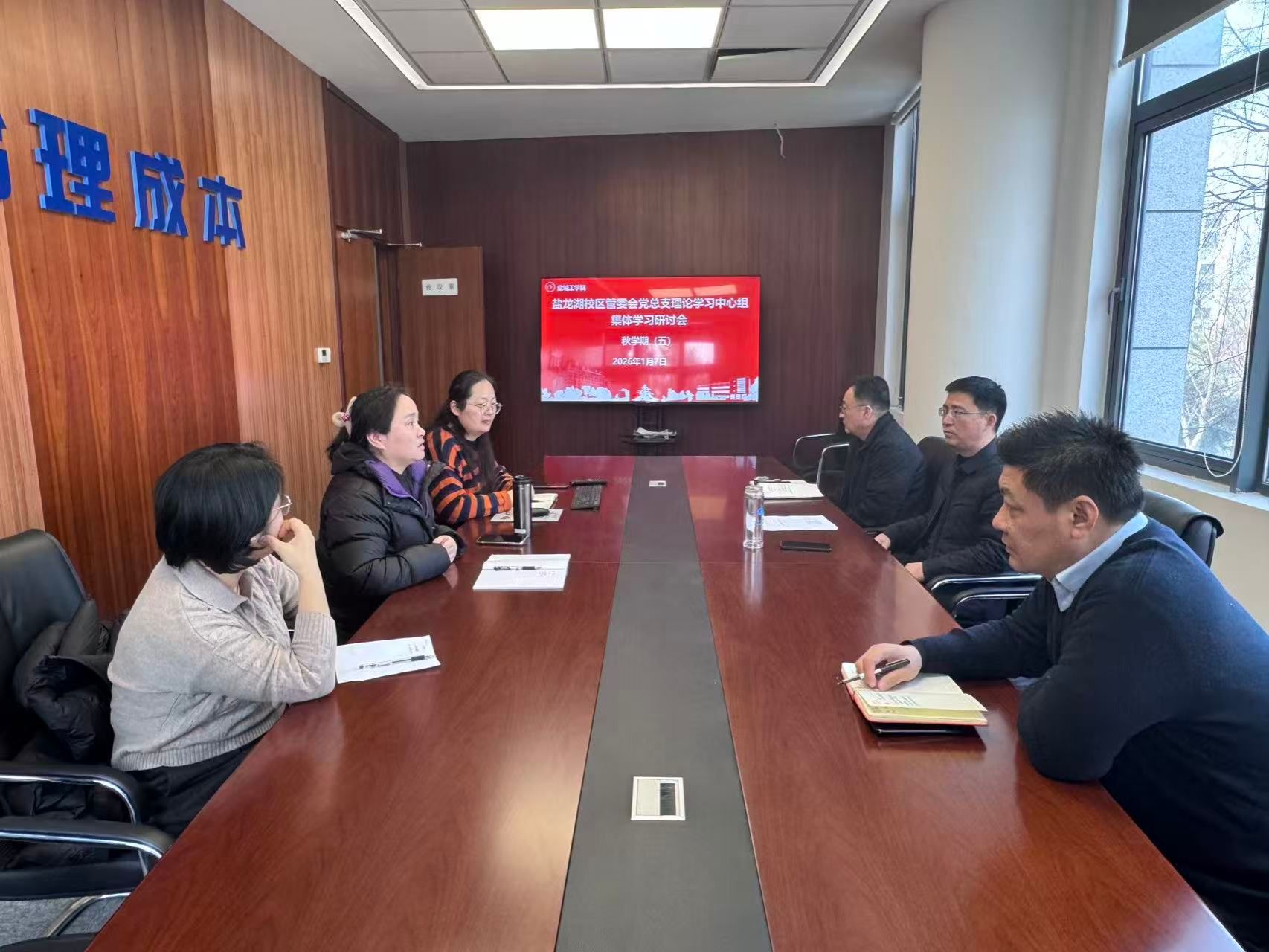 1月 7 日下午,盐龙湖校区管委会党总支理论学习中心组在大学科技园E1南楼二楼会议室召开2025秋学期第五次集中学习会。副主任、党总支副书记(主持工作)赵云峰主持会议,党总支理论学习中心组成员参加。
