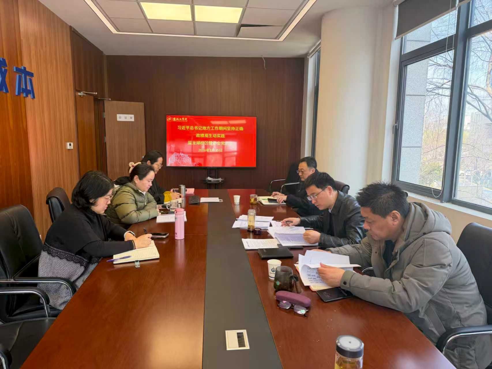 3 月 25 日上午,盐龙湖校区管委会党总支在大学科技园 E1 南楼二楼会议室召开树立和践行正确政绩观专题学习会。会议由党总支副书记(主持工作)赵云峰主持,部门领导班子成员、各科室负责人参加学习。
