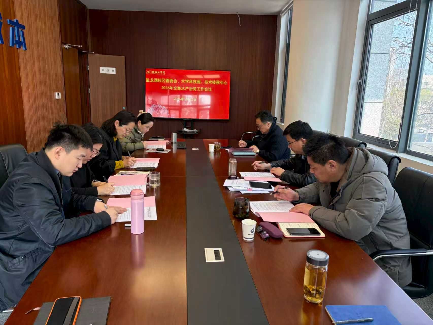 为深入贯彻落实全面从严治党战略方针,持续强化党风廉政建设,筑牢拒腐防变思想防线,3月25日上午,在大学科技园E1南楼二楼会议室,盐龙湖校区管委会、大学科技园、技术转移中心召开2026年全面从严治党工作会议。党总支副书记、副主任(主持工作)赵云峰主持,全体教职工参加。