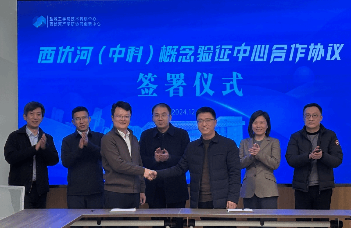 12月15日下午,西伏河(中科)概念验证中心合作协议签署仪式在我校产教融合大楼会议室举行。副校长、盐城市政协副主席丁成主持会议。中国科学院科技创新发展中心党委委员、所务委员兼科技合作处处长初玉、科技合作处副处长张微微,中科智汇工场总经理柳海永、副总经理李华兴,盐龙湖校区管委会、大学科技园、技术转移中心副主任(主持工作)赵云峰等参加会议。