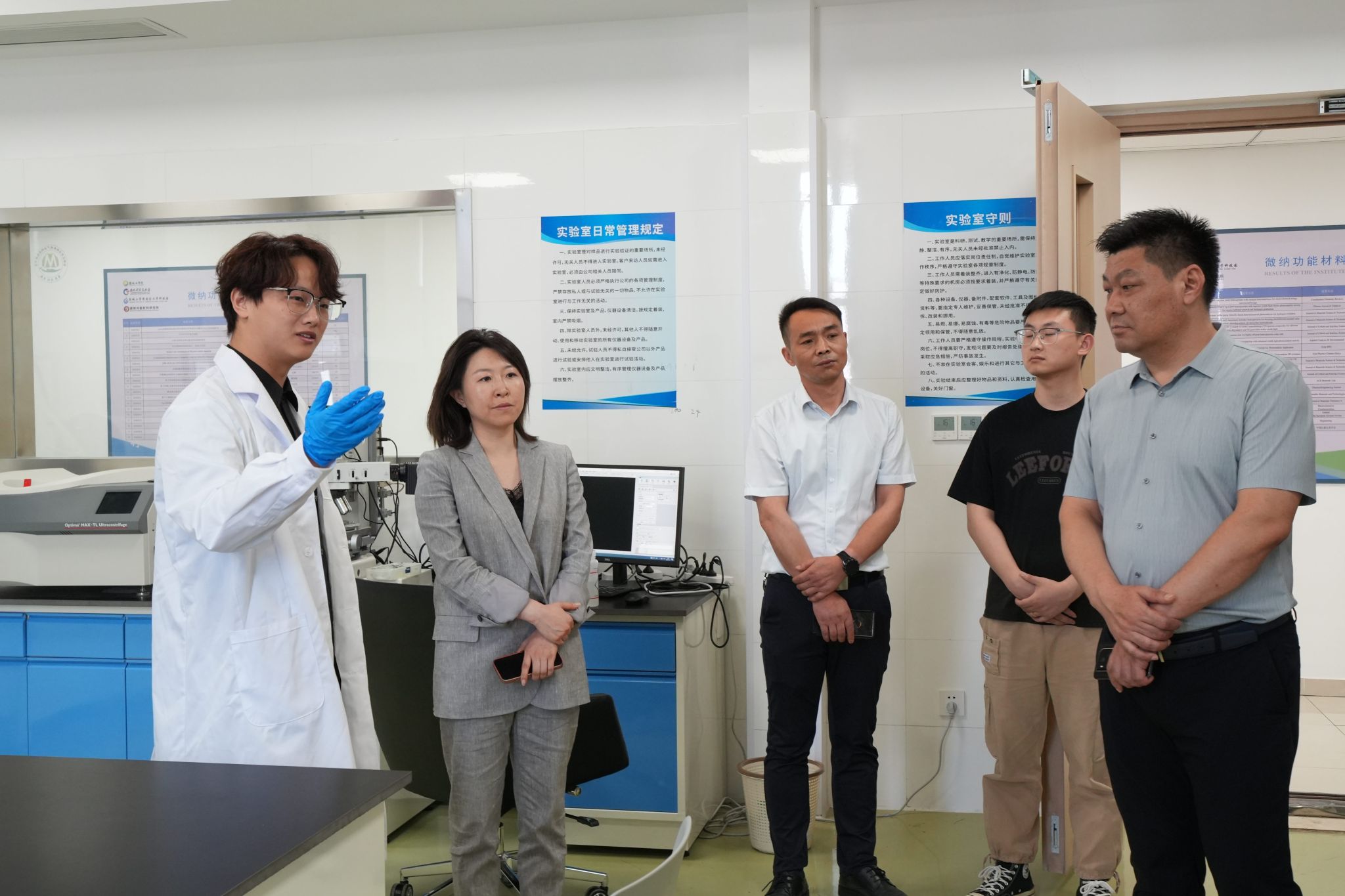 张建功副主任向调研团成员介绍参观了国家大学科技园展厅、多个前沿创新平台及实验室。他详细阐述了我校与盐城高新区的合作模式,并简要介绍了科技园在创新创业环境营造、科研成果转化及企业孵化服务等方面所开展的工作。参观过程中,胡楠多次驻足观看,并与科研人员进行了深入交流。