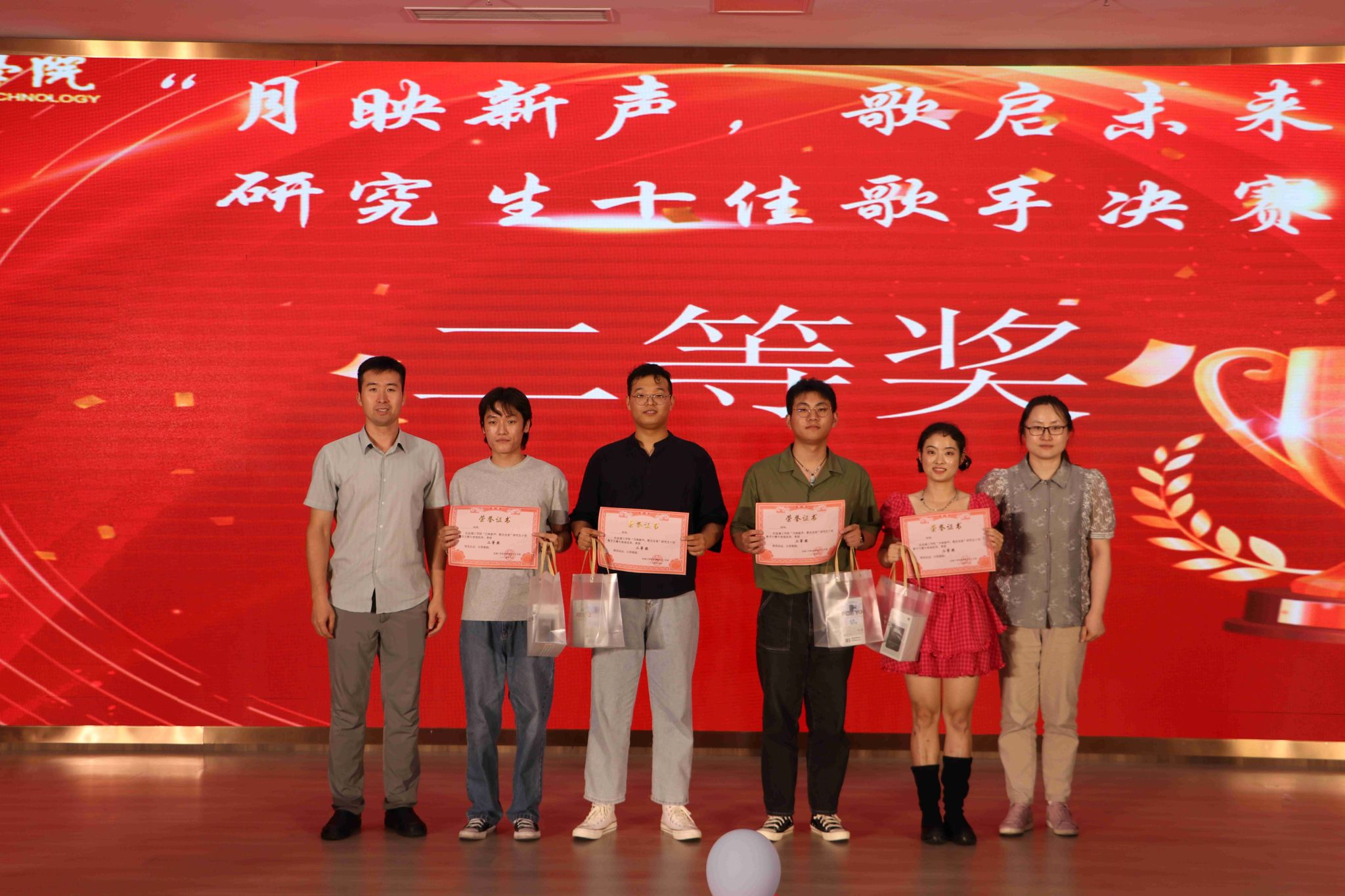 经过初赛和复赛,最终十位选手脱颖而出,站上了决赛的舞台。比赛在汪金辉同学的开场歌曲《新贵妃醉酒》中拉开帷幕。来自不同学院的十位选手依次登台演绎,他们风格各异,歌曲题材多样,每一位都尽显才华,为观众带来了一场视听盛宴。孙玉涵同学深情演绎的《背对背拥抱》,仿佛诉说着一段无法言喻的爱与遗憾;丁嘉诚同学以一曲《年少有为》引起了全场的共鸣;田丰桦同学用《牵手》演绎了一段如诗如画的情感旅程;崔明豪同学的《遥远的她》将粤语歌曲中的细腻和怀旧展现得淋漓尽致;陶倩同学以一曲《Dance Monkey》带来了全场的欢腾,现场掌声雷动,气氛瞬间达到高潮;高子杰同学演唱的《水星记》带给听众一种如梦似幻的听觉体验;胡雪欣同学以《青春修炼手册》活力四射的表演博得了全场喝彩;丁源同学的《笑忘书》为比赛增添了一份浓厚的艺术氛围;田旭同学深情演绎《你就不要想起我》,用真挚的情感激发起观众内心强烈的共鸣;最后,王吉祥同学的《Last Dance》给比赛划上了一个完美的句号。经过紧张激烈的角逐,最终陶倩同学获得一等奖,胡雪欣等四位同学获得二等奖,崔明豪等五位同学获得三等奖。