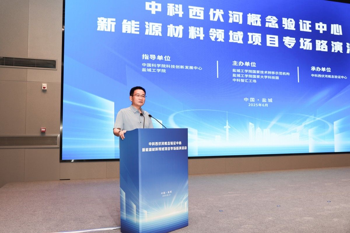 6月12日下午,我校中科西伏河概念验证中心新能源材料领域项目专场路演活动在盐城绿色低碳科创园成功举办。盐城市人民政府副市长祁从峰,中国科学院科技创新发展中心副主任吴建国,我校党委书记方海林,盐南高新区党工委书记、管委会主任唐高明等出席。副校长、市政协副主席丁成主持。市政府、中国科学院科技创新发展中心、市科技局、盐南高新区、中科智汇工场、投资机构代表、项目路演评审专家,我校理工类二级学院、理工类校级科研机构相关负责人、国家大学科技园企业代表等齐聚一堂,共同探讨新能源材料领域发展成果。