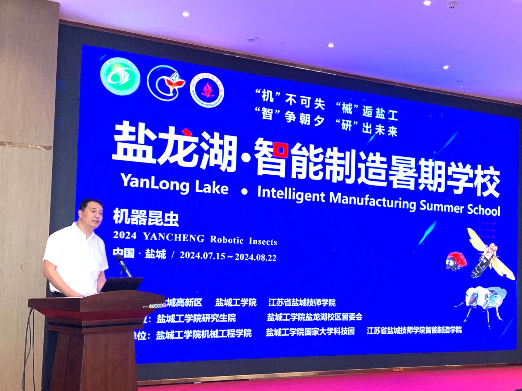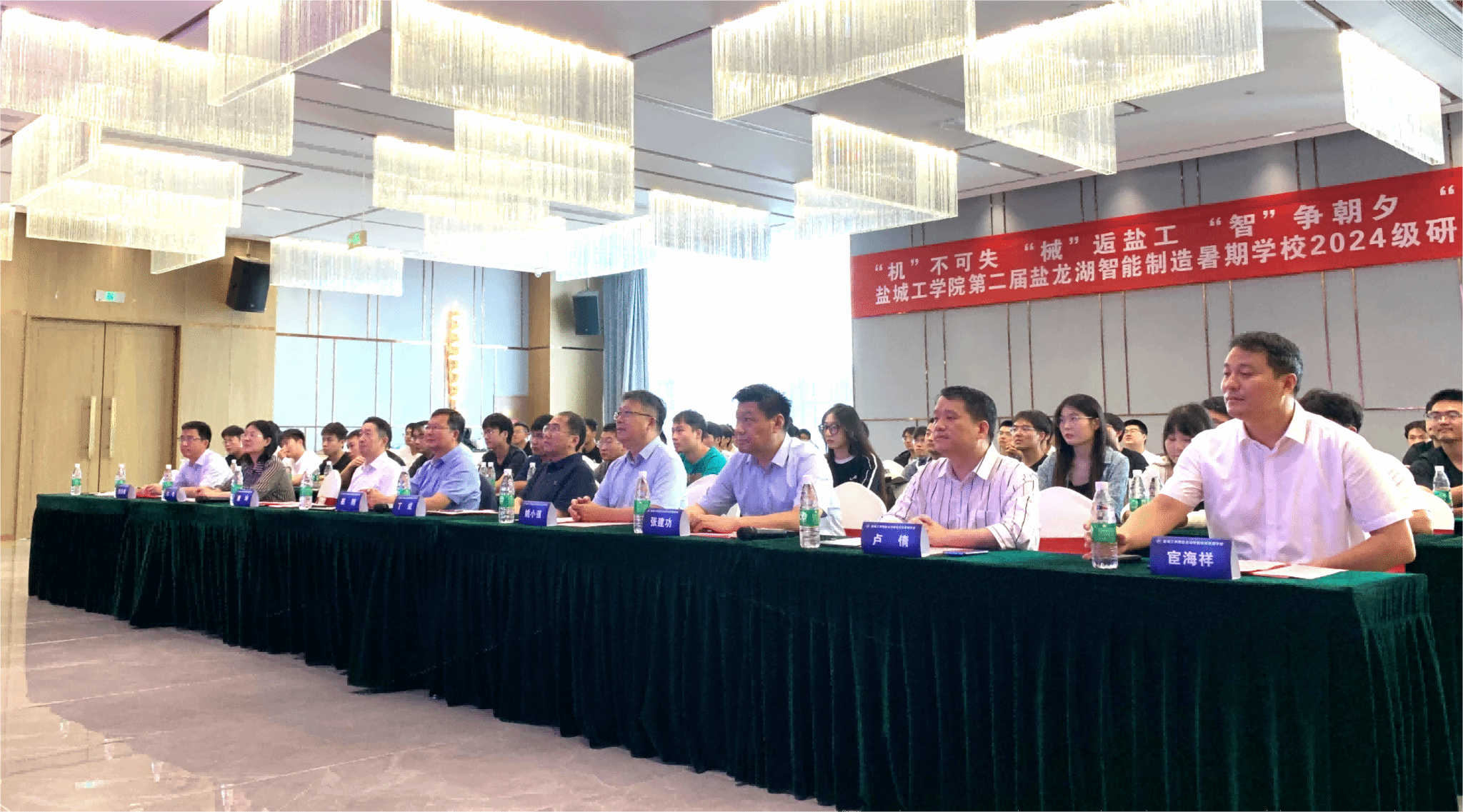 盐城工学院第二届盐龙湖智能制造暑假学校2024级研究生结业典礼于8月22日下午在我校大学科技园隆重举行。本次活动得到了盐城高新区、盐城工学院、江苏省盐城技师学院的指导,由盐城工学院研究生院、盐城工学院盐龙湖校区管委会、江苏省盐城技师学院文港路校区主办,盐城工学院机械工程学院、盐城工学院国家大学科技园、江苏省盐城技师学院智能制造学院承办。校党委常委、副校长崔刚为一等奖获得者颁发荣誉。副校长、盐城市政协副主席丁成,盐城国家高新区管委会副主任唐坤发表了热情洋溢的致辞。江苏盐城技师学院党委委员、智能制造学院院长姚小强,我校党委研工部部长、研究生院院长许伟,盐龙湖校区管委会、大学科技园、技术转移中心副主任、副书记(主持工作)赵云峰等领导出席了本次活动。机械优集学院副院长(主持工作)宦海祥主持了典礼。盐龙湖校区管委会、大学科技园、技术转移中心副主任、副书记张建功、机械优集学院副院长卢倩,以及盐城高新区企业代表、我校国家大学科技园、机械优集学院教师代表、2024级专业硕士研究生等近百人参加了活动。