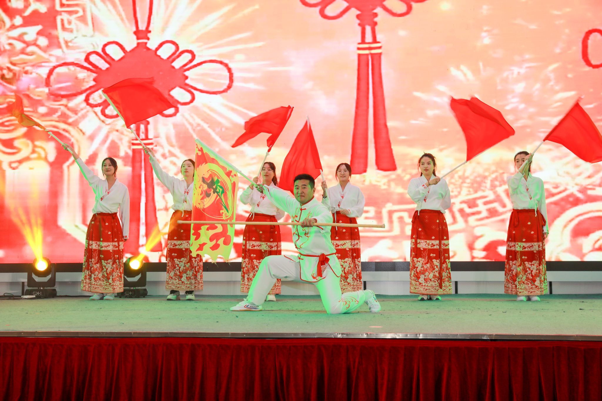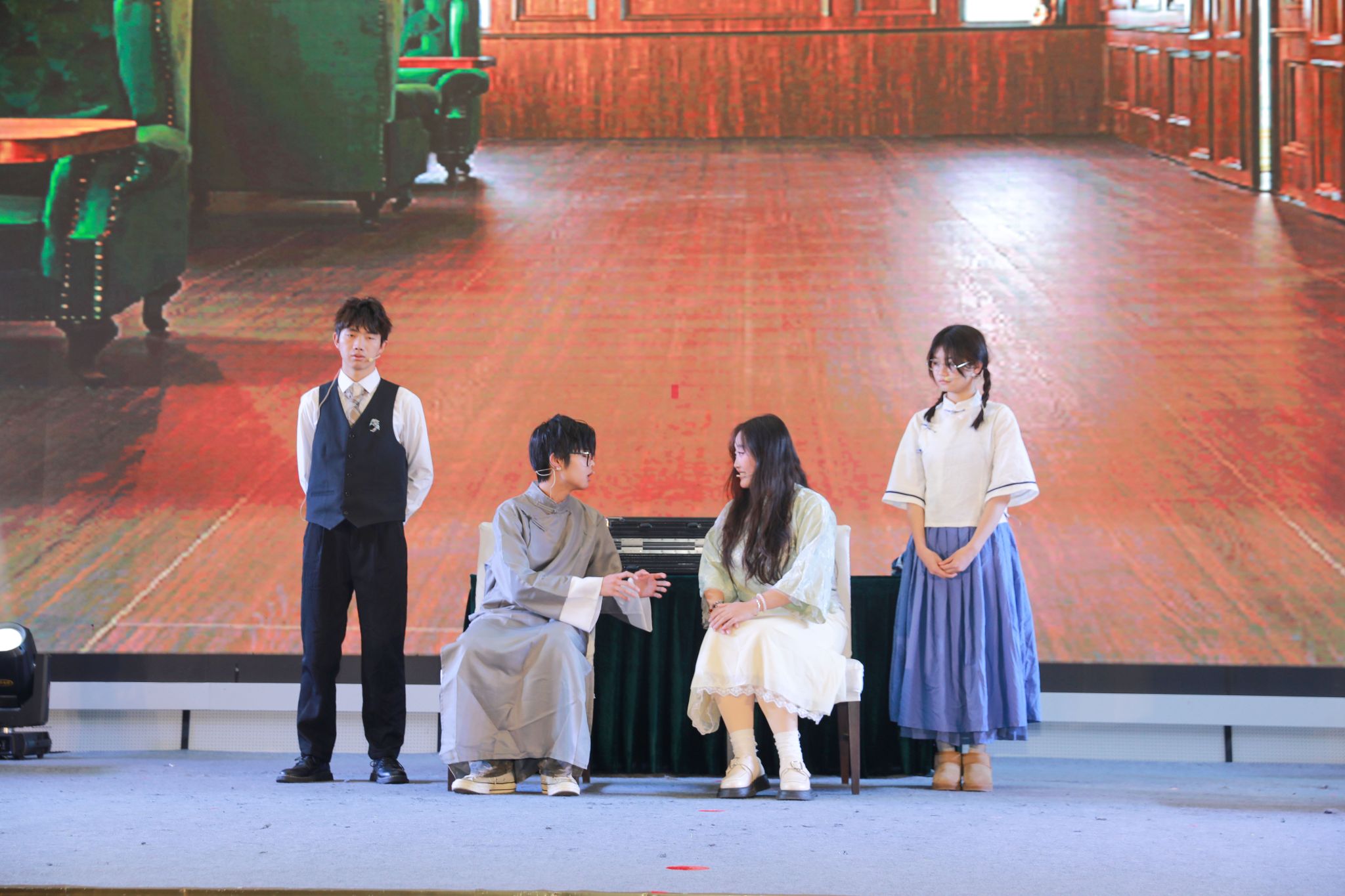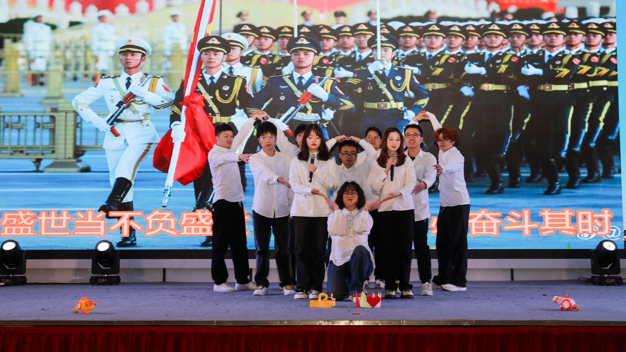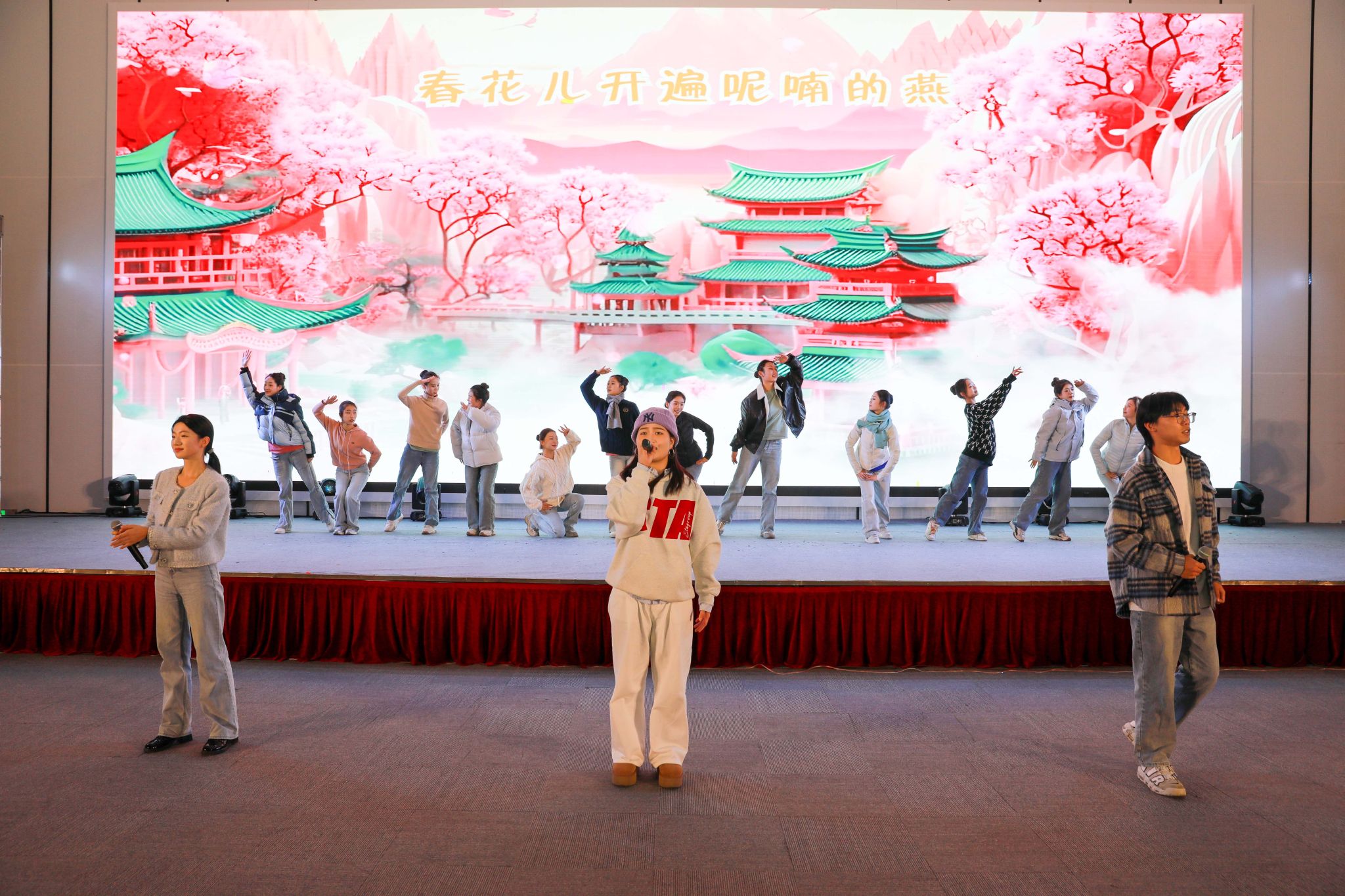 晚会在KOJ舞蹈社的舞蹈《MEOW》和今日青年乐队的声乐表演中拉开序幕。晚会分为三个篇章。第一篇章:初识——诗趁年华。《If I Ain't Got You》,歌声如诗,动人心弦;盐城市淮剧团的老师们通过《赤伶》展淮剧新姿,让我们领略淮剧雅韵,魅力非凡;《国之崛起》追溯历史波澜,绘就复兴长卷;《遥远的她》、《上春山》节目,将晚会进一步推向高潮,铺开华美盛卷。第二篇章: 融合——聚势启新。《Young Style》用炫酷街舞点燃现场激情;《多远都要在一起》展现爱的执着与勇气;《春风十万里》传递温暖与希望,激励着同学们勇往直前。《赛马》以气势磅礴、激情奔放的旋律仿佛在观众面前展现了一幅生动热烈的赛马场面;《旗武飞扬》,融合舞旗和武术,深受现场师生喜爱。第三篇章:共生——共筑未来。《AI SHANG-Show》服装走秀,韵律无限,展现独特的艺术美感;方圆话剧社小品《少爷和小姐》角色新奇,剧情爆梗不断,为观众呈献了一场精彩难忘的喜剧狂欢;《逆光》诠释面对困难和黑暗,只要坚定心中的光芒,不放弃不退缩,就会迎来充满希望和光明的未来;《盐工青年》讲述新生对考研路的执着追求和对未来科研期冀愿景。晚会在《我爱你中国》合唱声中圆满收官,表达了盐粒子们对伟大祖国的诚挚祝福与对美好生活的热切憧憬,以蓬勃朝气与豪迈气概奔赴未来的精神风貌。